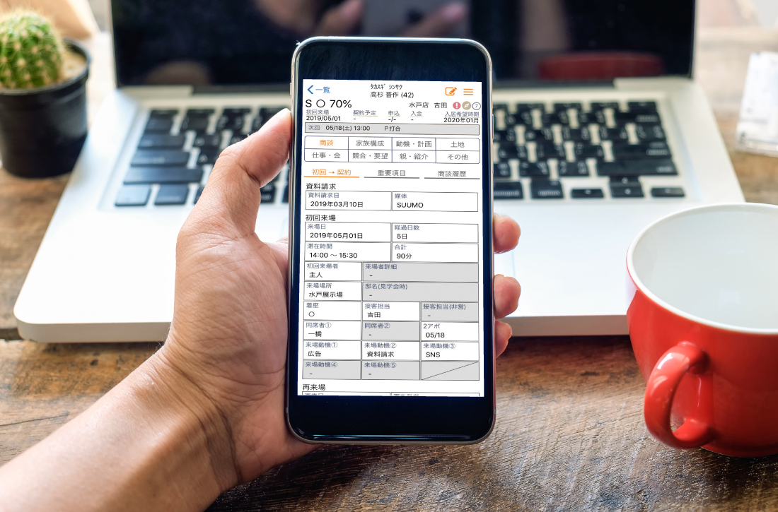 指示をもらう事が可能に。追客した結果もスマホですぐに