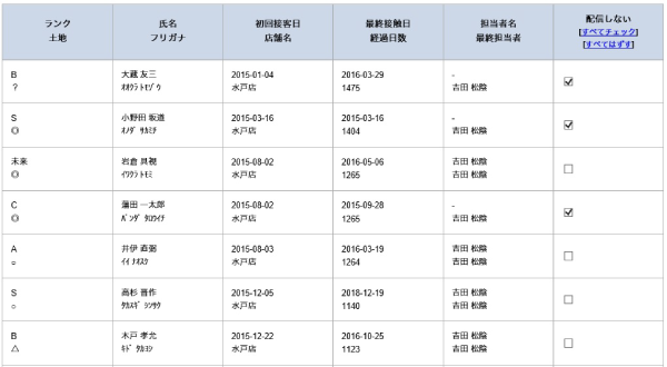 DM発送リストの最後面談日・最終連絡日・最終DM発送日などの情報を確認し、架電・訪問を行い定期的に名簿のクリーニングをすることで顧客の状況を正確に把握しLBD*の低減につながる。