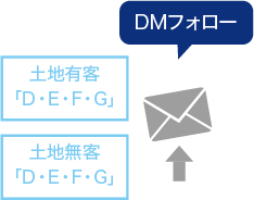 「期間」「ランク」「担当・未担当」「土地の有無」「希望エリア」などの複数条件で絞り込み、データの抽出が可能。ターゲットごとに有効なアプローチを行うことでDMの効果を高め、定期的な名簿のクリーニングによりLBD*を低減します。 *LBD(Lose By Default)→ 不戦敗。いつのまにか他決。