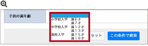 カルテに登録したお子様の年齢は、誕生日がわからない場合でも登録日を誕生日として毎年自動で更新されるので、正確に○年4月に入学という年月が出せなくても、HOTな顧客候補抽出として活用できる。
